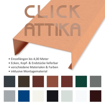 Dieses Traufblech mit Umschlag aus PREFA Alu Prefalz P.10 0,7 mm Silbermetallic (RAL9006) hat eine Länge von 3 Meter und einen Zuschnitt von 250 mm (Summe der Seiten A bis D).