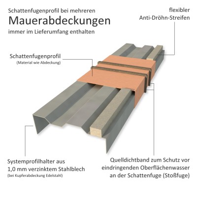 Das Click-Attika Eckelement STKB-20E aus Stahlblech verzinkt Kupferbraun (RAL8004) ist geeignet zur Erweiterung Ihrer Mauerabdeckung bei Eckmontage. Sie ist passend zu Mauerabdeckungen der STKB-20XXX-Serie für Mauerbreiten bis 16cm Fertigmass und wird inklusive Stück Systemprofilhalter SPH-200S, Länge 0,5 Meter, aus Stahlblech verzinkt 1,0 mm und Befestigungsschrauben geliefert. Bei Bestellung von mehreren Abdeckungen, Ecken oder Endstücken sind zusätzlich die passenden Stoss-Unterverbinder in der entsprechenden Anzahl enthalten.