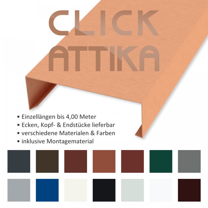 Die Click-Attika Mauerabdeckung ALWE-44200 aus Aluminium Weiß (RAL9002) ist geeignet zum Abdecken von Mauern bis 40cm Mauerbreite (Fertigmass) und wird inklusive 2 Stück Systemprofilhalter SPH-440S, Länge 0,5 Meter, aus Stahlblech verzinkt 1,0 mm und Befestigungsschrauben geliefert. Bei Bestellung von mehreren Abdeckungen, Ecken oder Endstücken sind zusätzlich die passenden Stoss-Unterverbinder in der entsprechenden Anzahl enthalten.