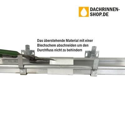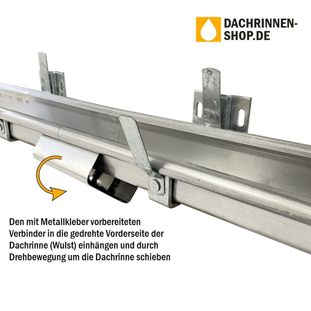 Mit dem Klebe-Rinnenverbinder lassen sich zwei kastenförmige Rinnen der Rinnengröße RG333 miteinander verbinden. Zusätzlich eignet er sich auch zur Abdichtung von schadhaften Rinnenverbindungen.