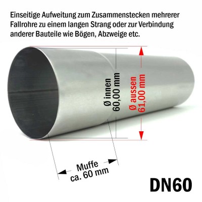 5er Pack Aluminium Fallrohr DN60 rund Länge: 0,75 Meter