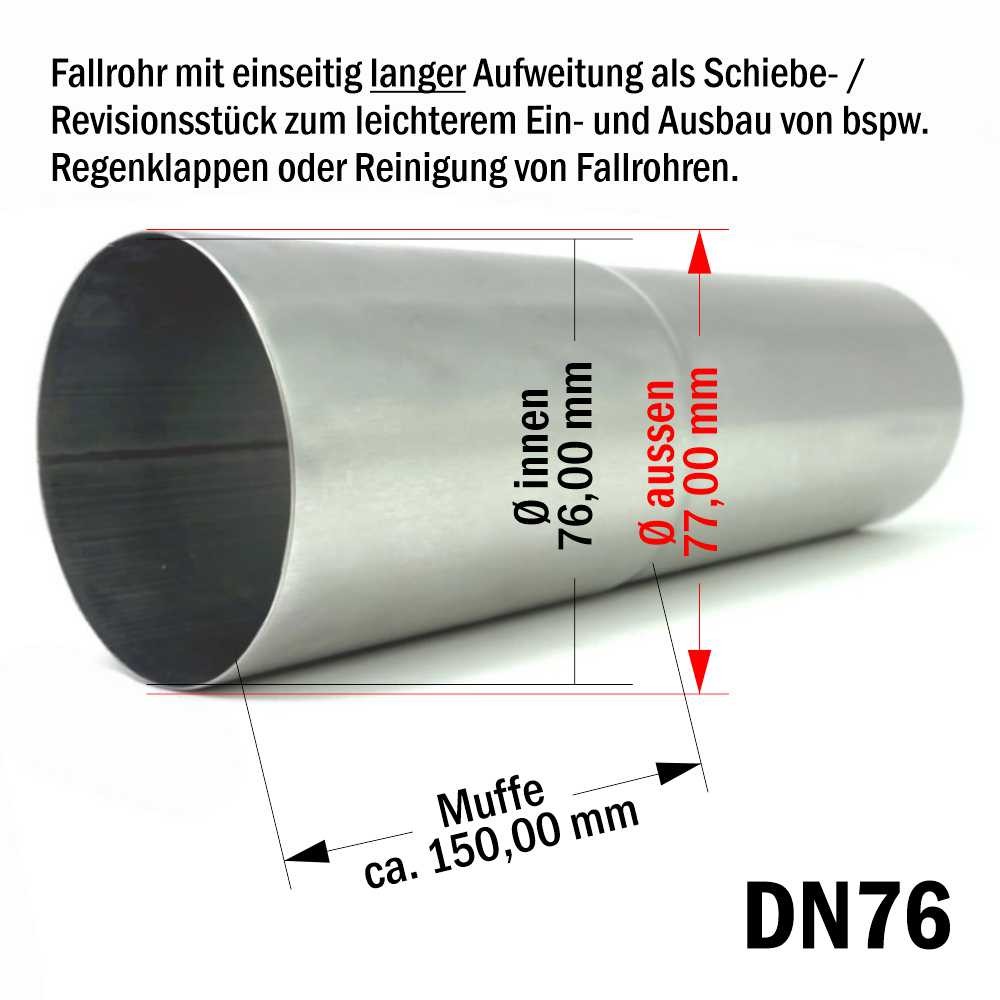 Aluminium Fallrohr mit Langmuffe DN76 rund Länge: 1 Meter