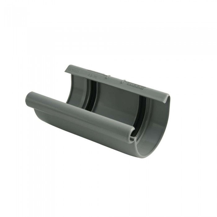 Mit der Rinnenverbindungsschale lassen sich zwei halbrunde Dachrinnen verbinden (Nocken-Nut-System). Bei der Montage ist die Einstecktiefe zu beachten.