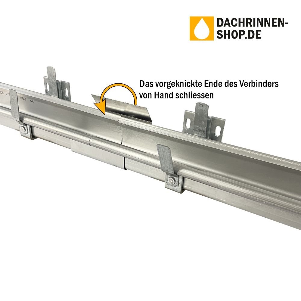 Mit dem Klebe-Rinnenverbinder lassen sich zwei kastenförmige Rinnen der Rinnengröße RG400 miteinander verbinden. Zusätzlich eignet er sich auch zur Abdichtung von schadhaften Rinnenverbindungen.