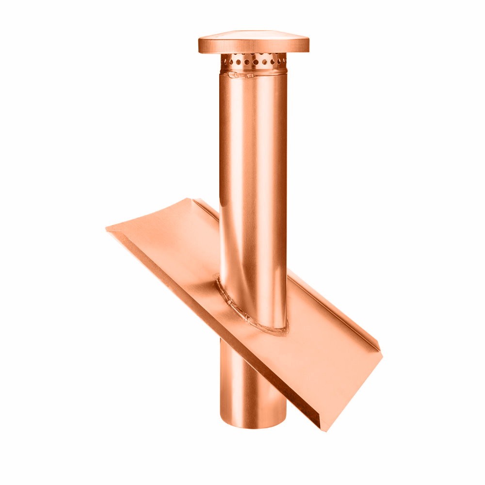 Kupfer Dunstrohr mit Dunsthut auf Grundplatte mit Wasserfalz DN120