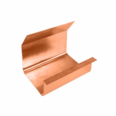 Kastenförmiger Rinnenboden RG 333 aus Kupfer zum Verschließen des Dachrinnenendes. Der Lötrinnenboden wird auf das linke Ende der Dachrinne aufgesteckt und verlötet.