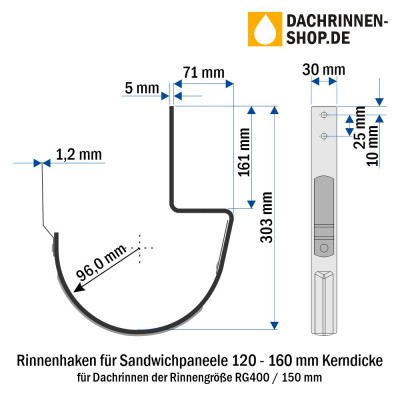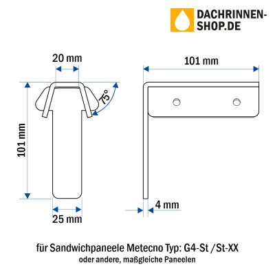 10er Set Rinnenhaken RG400 für Sandwichplatten bis 120-160mm von Metecno