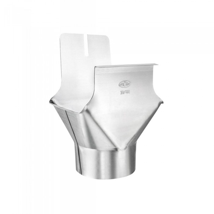 Bei Hängedachrinnen werden als trichterförmige Einläufe häufig Einhangstutzen verwendet. In die Dachrinne wird dann ein ovales Loch mit Bördelrand geschnitten, das etwa 30% größer ist als der Fallrohrquerschnitt ist. Über diesem wird dann der Einhangstutzen eingehängt und verklemmt.