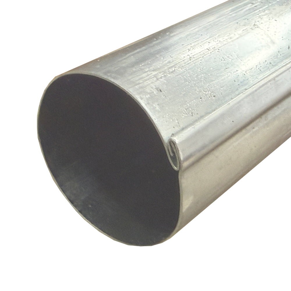 Dieses gefalzte, runde Fallrohr aus Titanzink hat einen Durchmesser von 50 mm und eine Länge von 2 Meter. Die Aufweitung am oberen Ende entsteht beim konischen Falzen und dient zum Zusammenstecken mehrerer Fallrohre zu einem langen Strang.