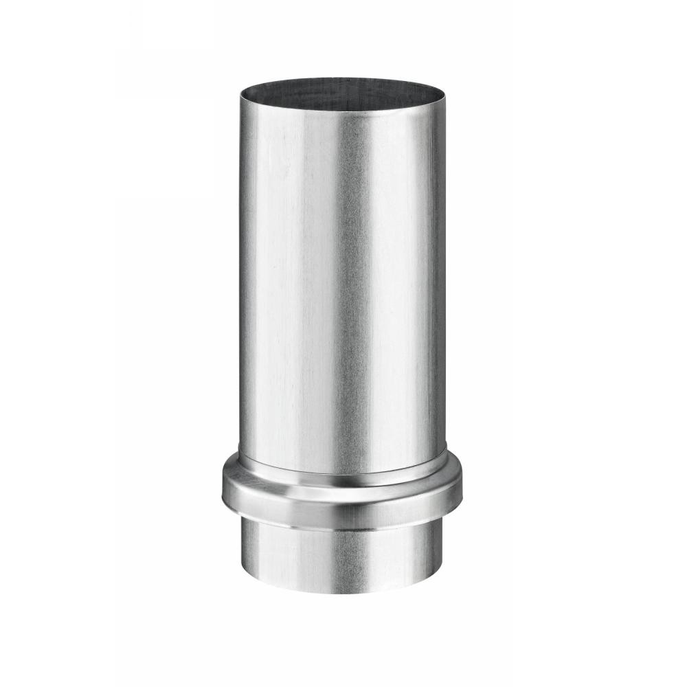 Mit der Schiebemuffe gehören komplizierte Standrohranschlüsse der Vergangenheit an. Einfach die Langmuffe auf das untere Ende des Fallrohrs schieben, zurückschwenken und in das Standrohr stecken. Die gepresste Standrohrkappe sorgt für einen schönen Abschluss und verhindert sicher und zuverlässig das Abrutschen in das Standrohr.