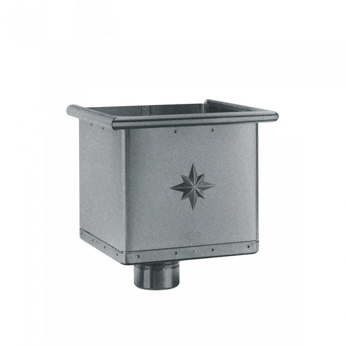 Der kubische GRÖMO ALUSTAR Wasserfangkasten mit exzentrischen Ablauf kann direkt an der Wand montiert werden. Ein Sockelknie ist nicht mehr nötig, da das Fallrohr in normgerechtem Abstand am Mauerwerk befestigt werden kann. Das ist optisch vorteilhaft und spart Kosten.