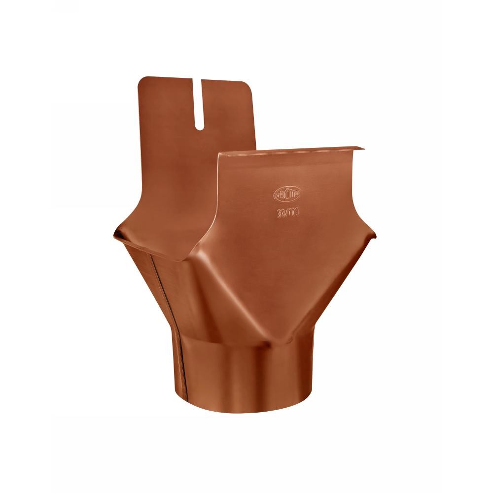 Der GRÖMO ALUSTAR Einhangstutzen ist das Bindeglied zwischen Rinne und Fallrohr. Durch seine Geometrie ist der Anschluss von runden Fallrohren auf kastenförmige Rinnen problemlos möglich. In zurückhaltender Optik leitet er das Regenwasser sicher und zuverlässig in das Fallrohr.